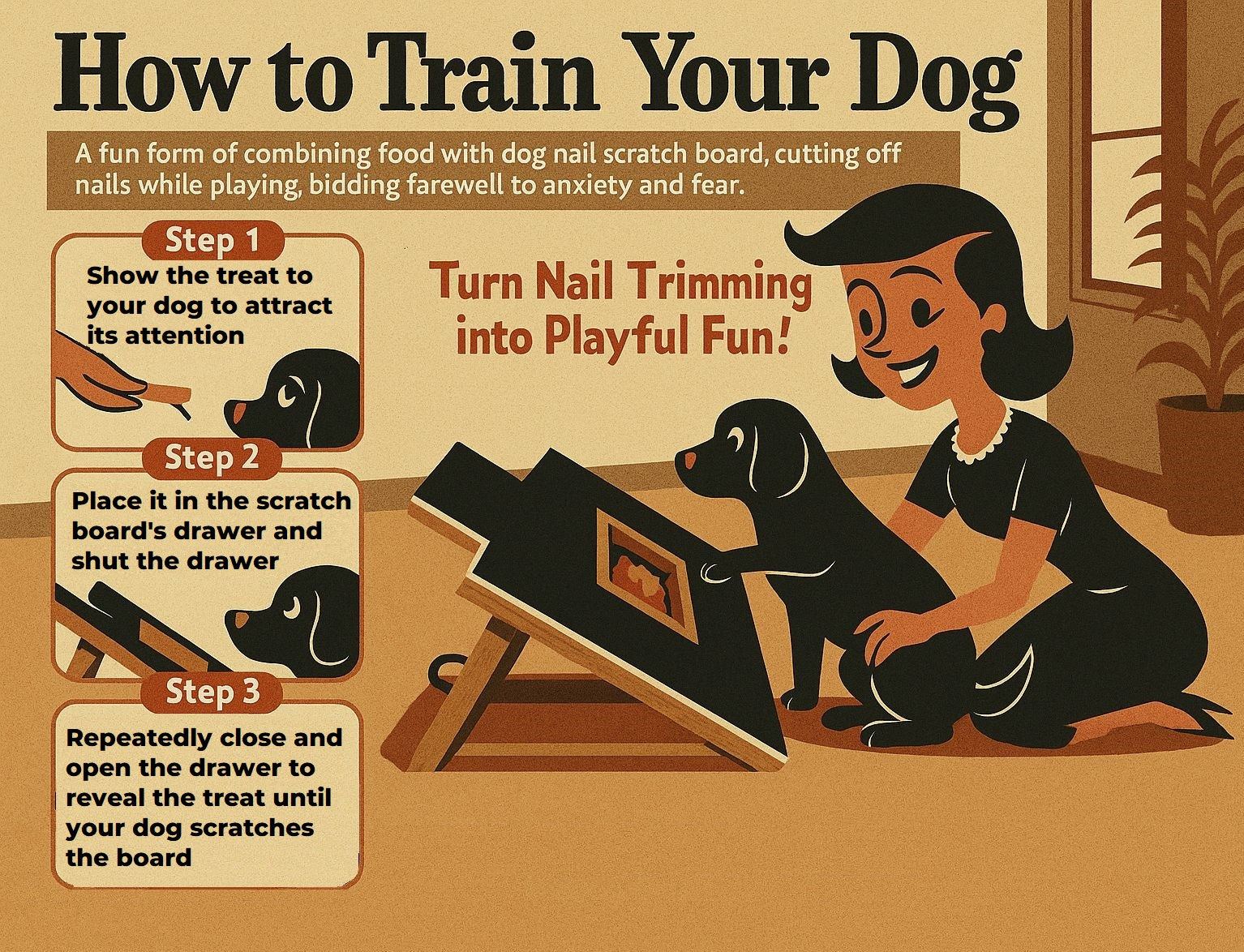 I used to dread nail trims, but this scratch board made it fun. A little smear of peanut butter and my lab actually asks to use it. The bamboo feels sturdy and it files evenly—no more clicking nails on the floor.